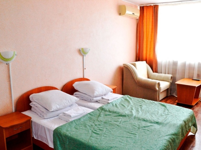 Отель предлагает размещение в номерах шести категорий: двухместные стандарты (без кондиционера, вентилятор по требованию), двухместные стандарты с кондиционером, трехместные стандарты с кондиционером, двухместные улучшенные, двухместный двухкомнатный улучшенный и двухместный студио. Все номера с балконами, обращены к морю. В хорошую погоду на горизонте видны волшебные очертания гор восточного Крыма.