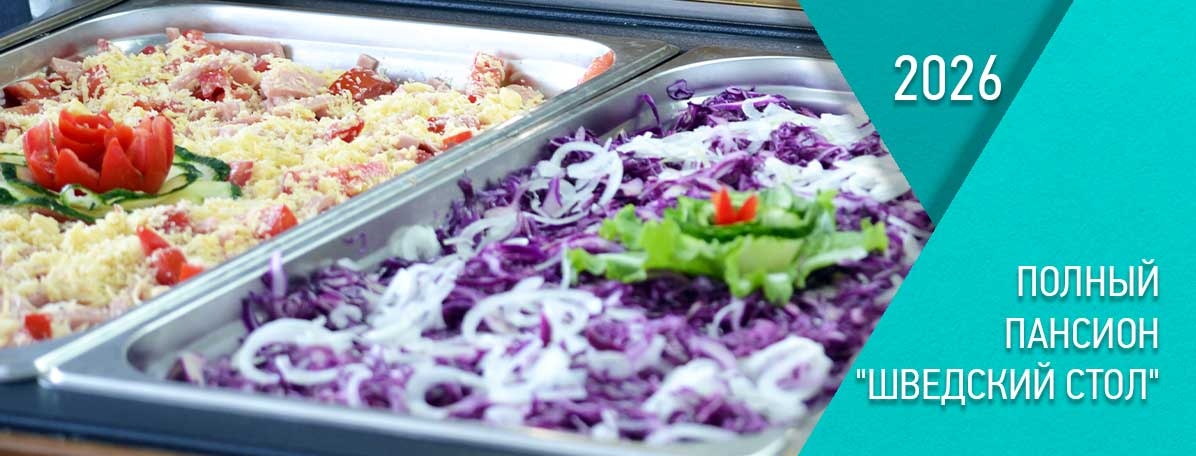В отеле «Морской уголок» действует единый тариф питания – полный пансион (трехразовое питание) по системе «шведский стол». В меню включены первые и вторые блюда, различные салаты, холодные закуски, выпечка, прохладительные напитки собственного производства, сезонные крымские фрукты и овощи.