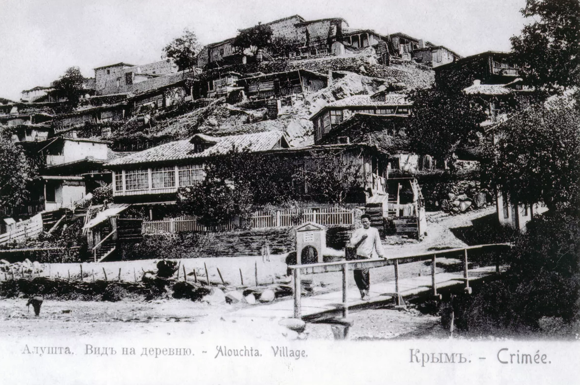 ... Алушта окружена «экономіями», т . ѳ. небольшими помѣстьями: каждая такая «экономія» имѣетъ при себѣ виноградники, требующіе рабочихъ рукъ и потому служащіе приманкой для в с ѣ х ъ ищущихъ заработка. Осенью и весною въ Алущтѣ бываѳтъ наплывъ рабочихъ изъ дальнихъ губерній, которые, въ чаяніи выгоднаго заработка, являются сюда нерѣдко въ сопровождении женъ и дѣтей."